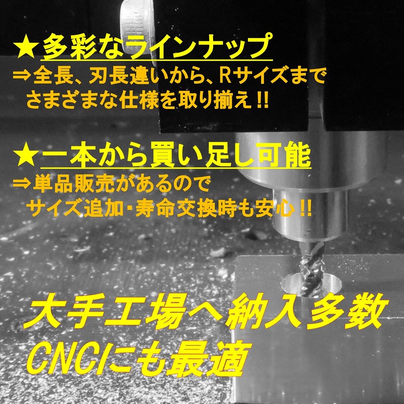 - [Applicable materials] Various steel materials such as resin, aluminum, general steel, copper, stainless steel (up to approximately HRC55)