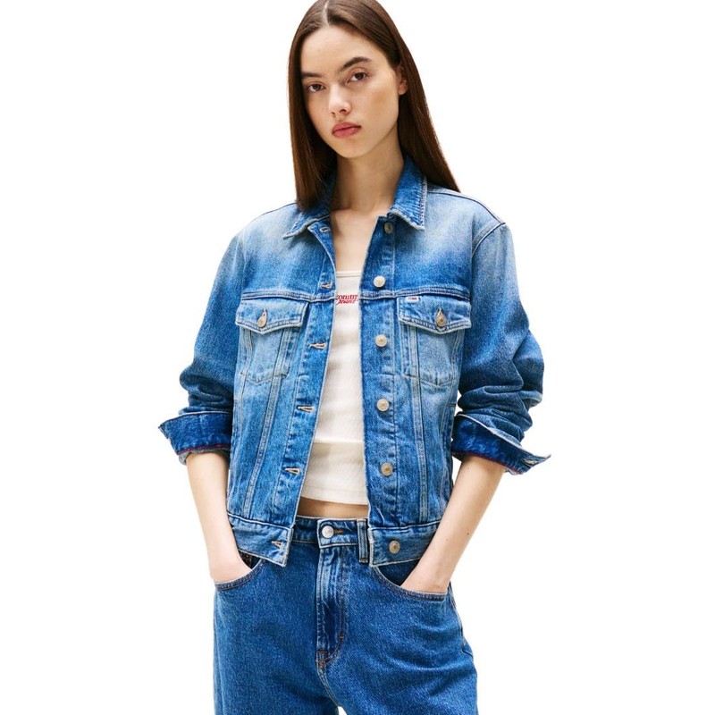 Tommy Jeans Women's Lightweight Trucker Jean Jacket with Embroidered Logo, De...