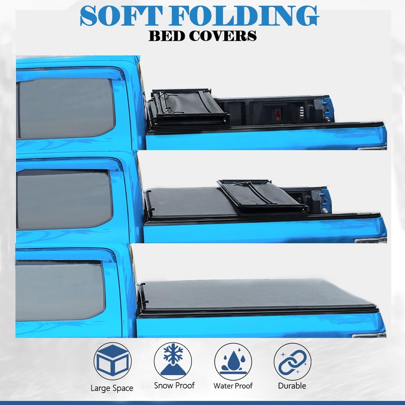 - 【SAFETY & MULTI-FUNCTION】Waterproofing, snow, dust, and UV Preventing, Anti-fall off. Double waterproof strips and particularly designed support rods are better for preventing water, snow, and dust. To prevent the cover slide from the bed while driving on the road, we use a latching system to keep the tailgate well sealed with Velcro straps on the sides.