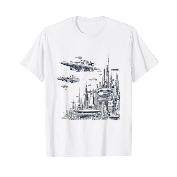 - Elevate your style and imagination with this collection, showcasing a stunning blend of science fiction elements - from towering skyscrapers to sleek flying vehicles - for a truly out-of-this-world look.