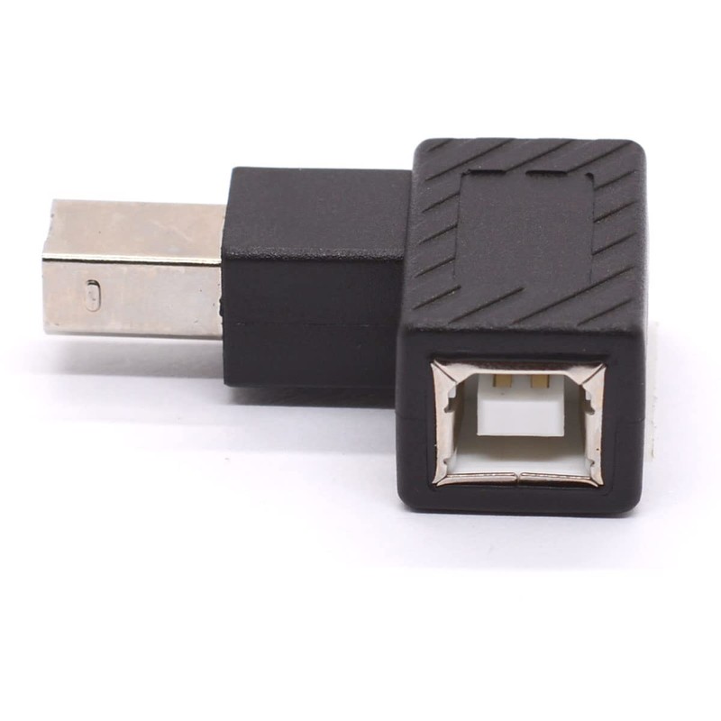 • 90 degree USB B male-to-female adapter, used to change the direction of the USB port. It can prevent the cable from being bent or damaged. It can also protect the original USB port of the device, which is a good choice.