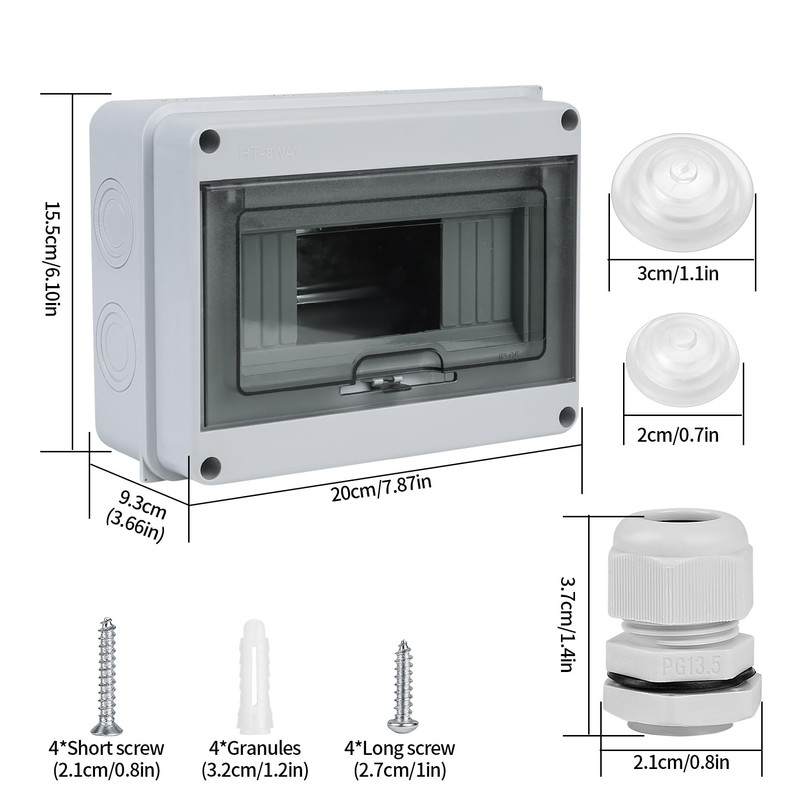 - Oberfl?chenmontage-Design: 8-Wege-Design mit Dehnschrauben, wasserdichter Dichtung und anderem Zubeh?r fr eine bessere Installation und sorgt fr Stabilit?t und Qualit?t Ihrer Elektroinstallation. Die wasserdichte Abdeckung des Verteilerkastens ist transparent und sichtbar, und der interne Status kann einfach berprft werden, ohne den Kasten ?ffnen zu mssen.