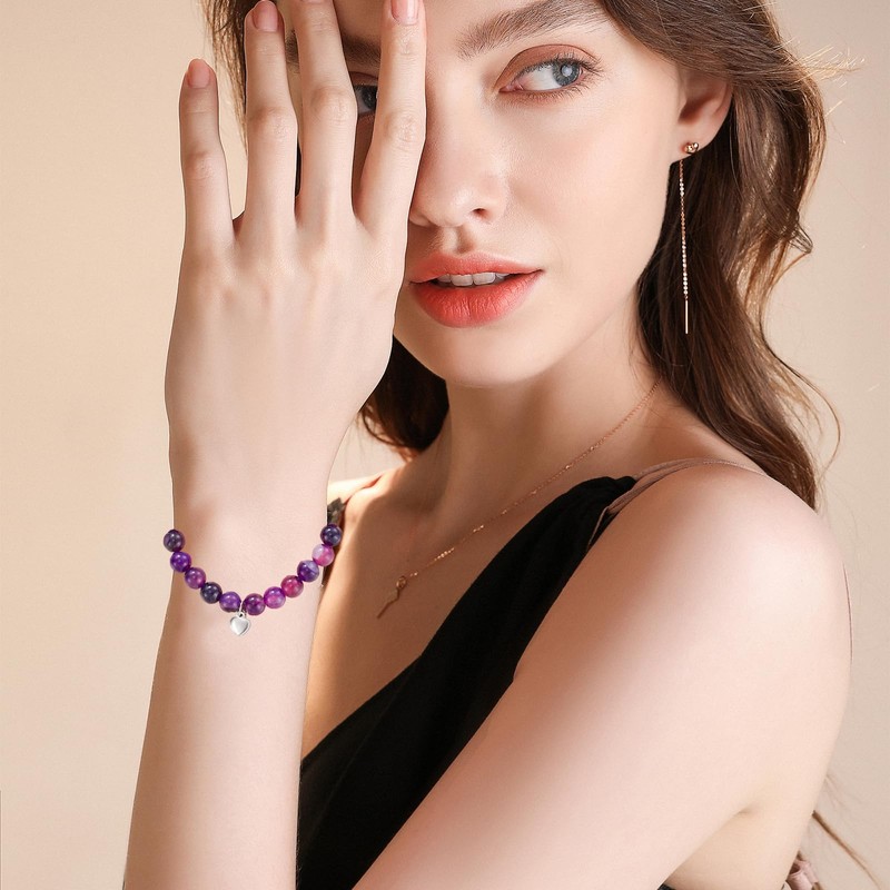 Tomtary Anxiety Bracelets for Women, Natural Gemstone Bead Bracelet Crystal Healing Bracelet with Heart Shaped Pendant Bracelet Gifts for Her Women Christmas Birthday Mothers Day