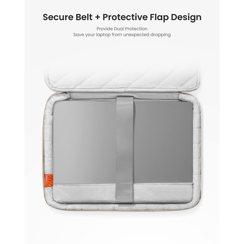 The full zip-around access laptop bag makes it easy to packability. To keep your laptop snug and secure inside and protect your laptop from unexpected drops due to forgetting to close the zipper, the laptop case is equipped with a dual protection structure - a secure belt and an innovative protective flap cover