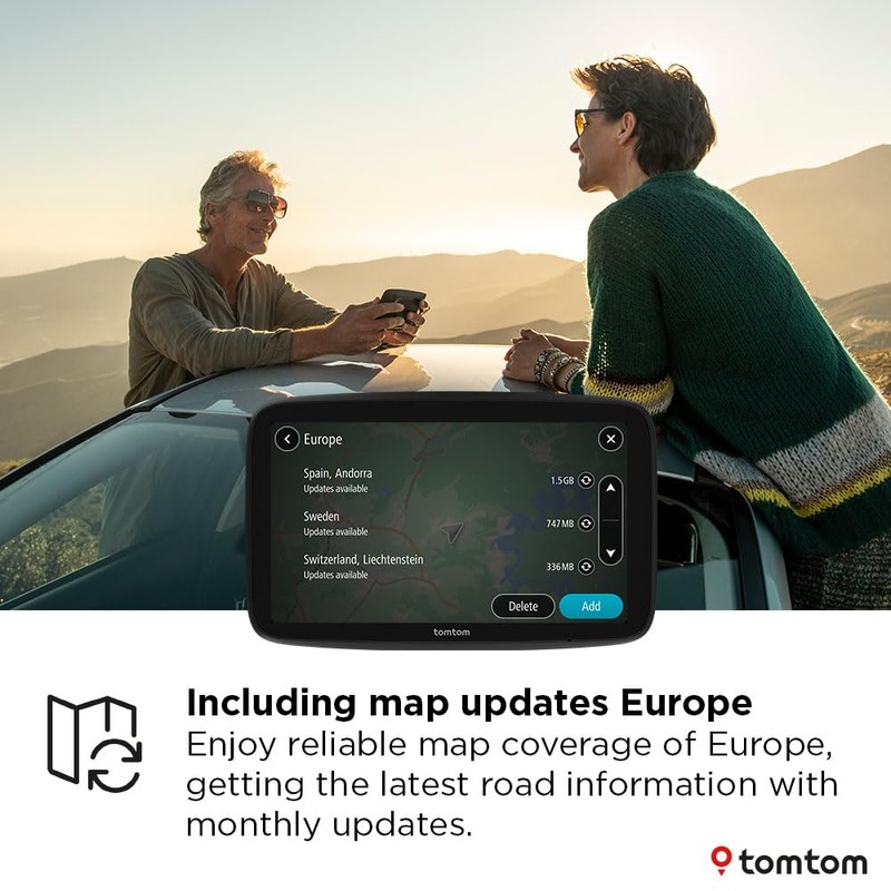 - TomTom Europe map updates; get the latest road information with monthly map updates included to avoid unpleasant surprises, navigating with ease by driving routes that account for road closures and other traffic inconveniences.