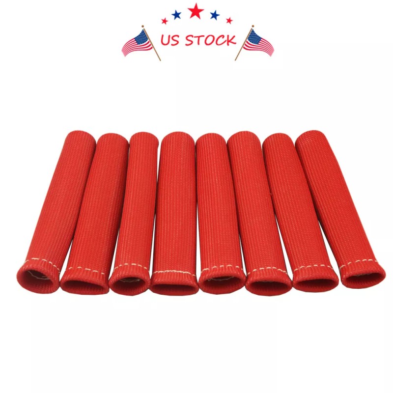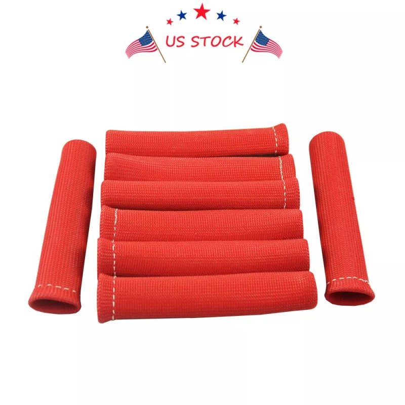 tomtop-auto 1200° 8 RED SPARK PLUG WIRE BOOTS HEAT SHIELD PROTECTOR SLEEVE BBC SBC 350 454