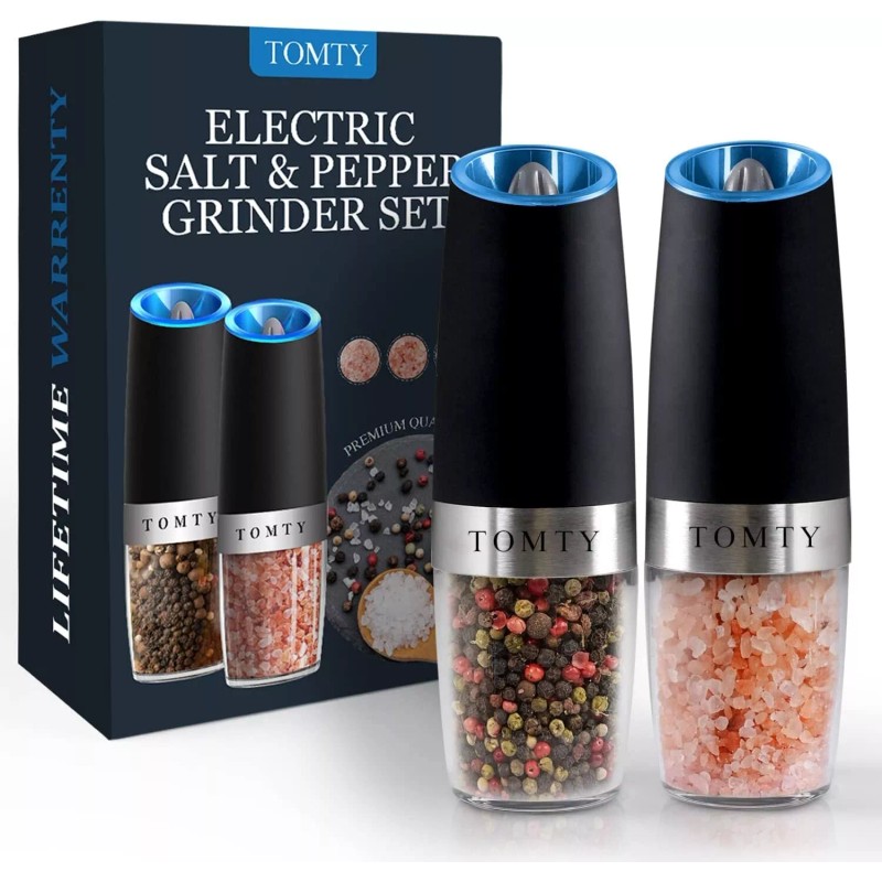 TOMTY Electric Salt & Pepper Gravity Grinder Set Battery Operated LED Light Great Gift