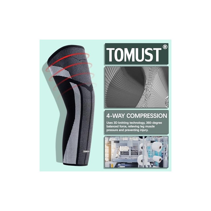 - UNIQUE NON-SLIP DESIGNTOMUST FULL LEG SLEEVE is made with German machine knitting technology together with U-drop technology, not only has excellent anti-slip effect, but also increases the pressure by 15% to improve the protection of the knee joint