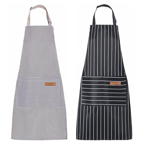 TOMVAES 2 Pack Kitchen Cooking Aprons, Adjustable Soft Chef Apron Washable with 2 Pockets BBQ Drawing Apron Bulk(Black/Grey Stripes)