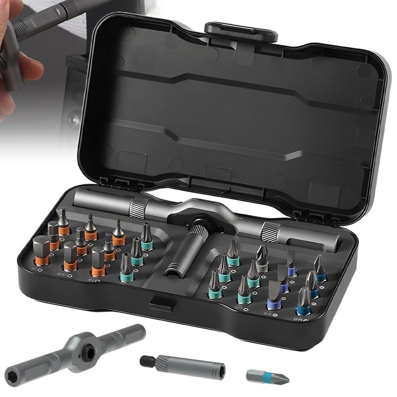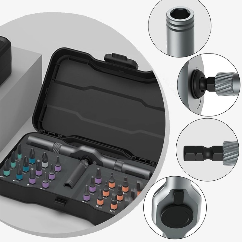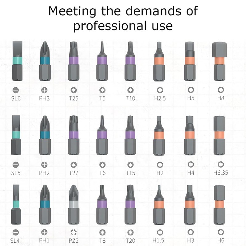- 💚💚**Complete Screwdriver Selection**: This multifunctional toolbox comes equipped with 24 pieces of S2 batch heads, covering a wide range of sizes including SL6, PH3, T25, T5, and more.