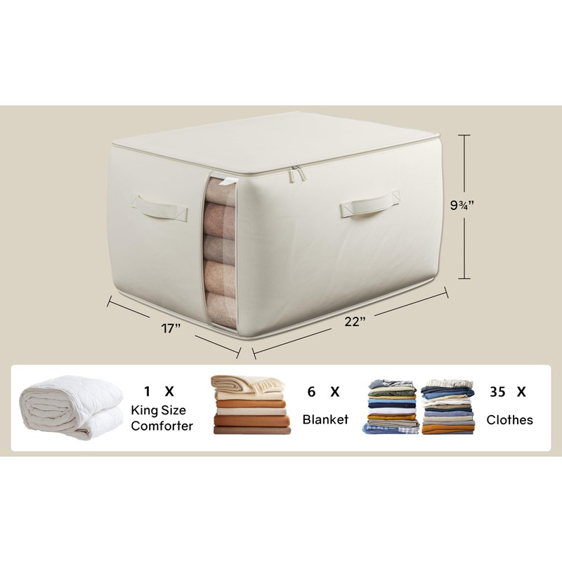 - 【Spacious and Versatile】With dimensions of 21.6"L x 16.5"W x 9.84"H, these blanket storage bags are perfect for storing a variety of items like toys, quilts, clothes, blankets, towels, and pillows. The breathable material is superior to typical vacuum storage bags