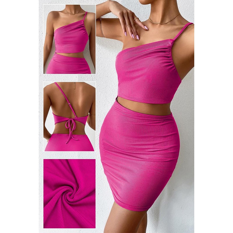 - One Shoulder Dresses For Women / Sleeveless Cocktail Dresses / Summer Bodycon Dresses For Women / Stretchy Mini Short Dress /cutout mini short dress/ Classic Solid Color