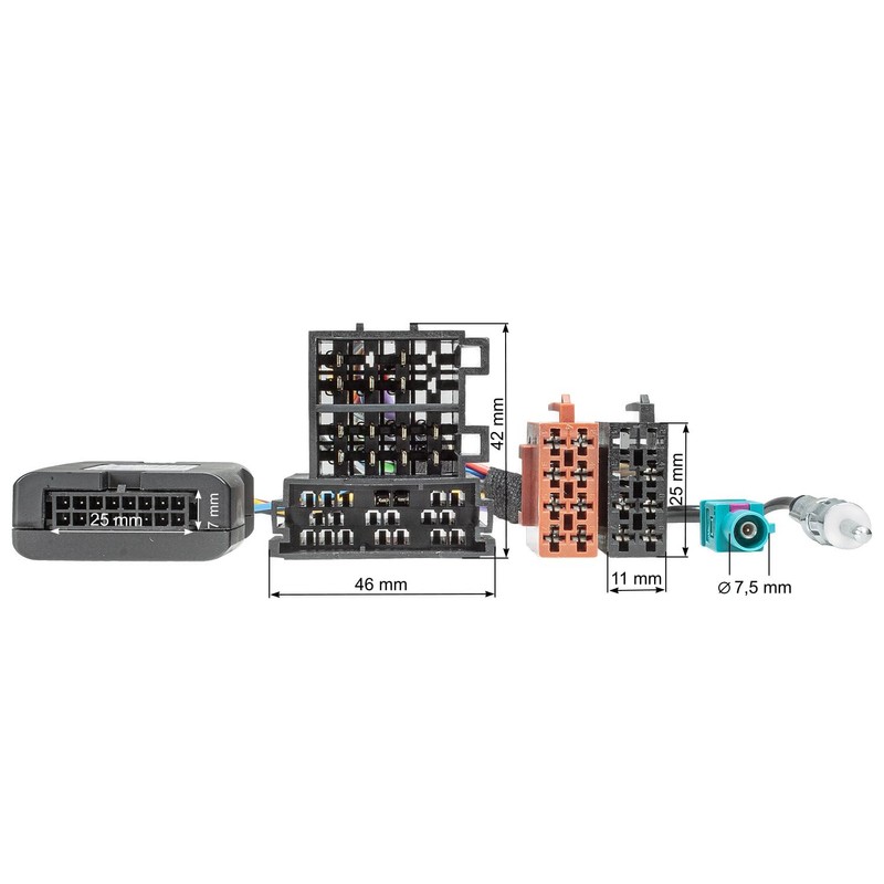 This steering wheel remote control adapter allows you to continue using the factory steering wheel remote control after replacing the factory radio with a retrofit device of popular brands. Provided that this has ISO standard connections for power and speakers. If the vehicle has Can-Bus technology, our adapters also adapt here. Please note the exact vehicle data.