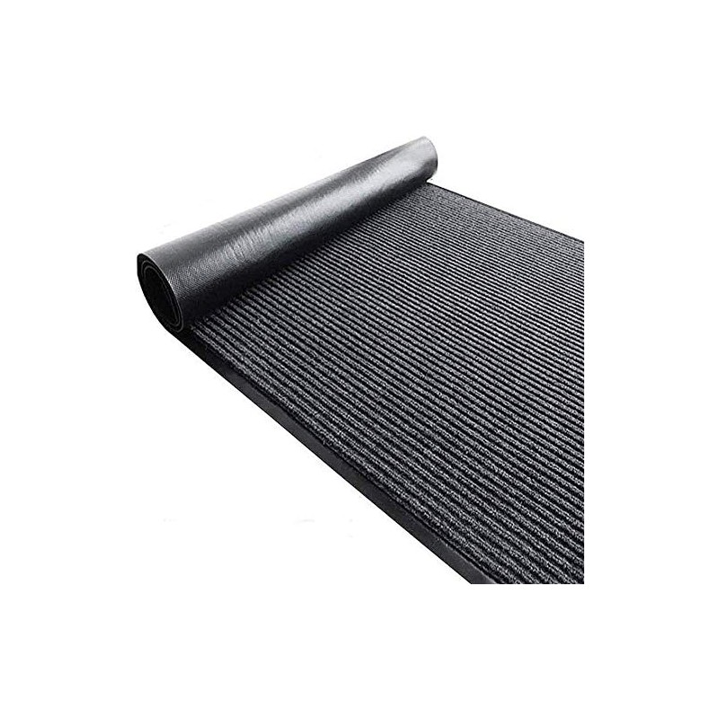 tonchean Brush Step Entrance Mat 3 x 10 Feet Ribbed Runner Rug Heavy Duty Hallway Runner Dirt Trap Mat with Non-Slip PVC Backing for Home Office Indoor Outdoor Gray
