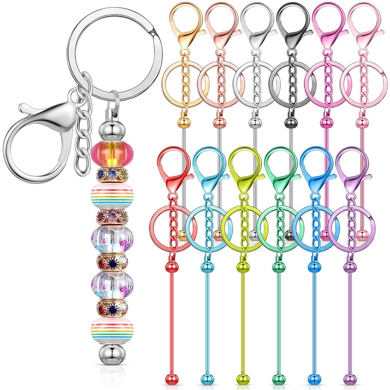 Tondiamo 12 Pcs Beadable Keychains Bars Bulk Blank Beaded Metal Keychain for Craft DIY Gift (Fresh)