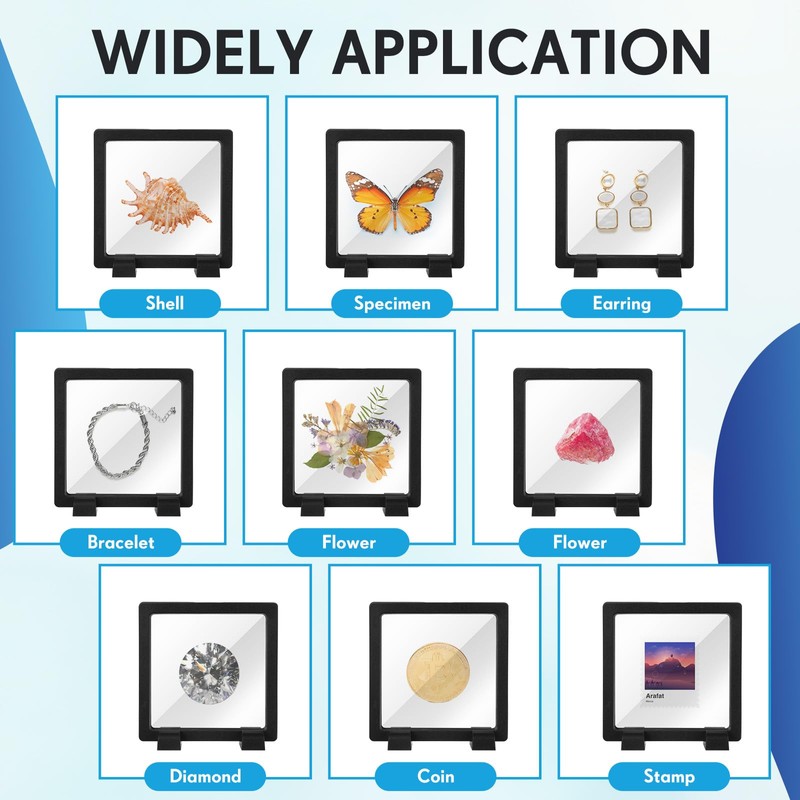 - Widely Applied: you can place items between PET films for a 3D hanging effect, and our plastic jewelry box are ideal for displaying souvenirs, such as medals, coins, stamps, jewelry, rocks, dried flowers and more, keeping them away from most air, moisture, and dust