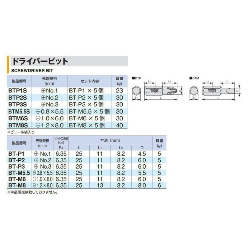 トネ(TONE) ドライバービット BTP3S ビット差込 (+)No.3 内容5点