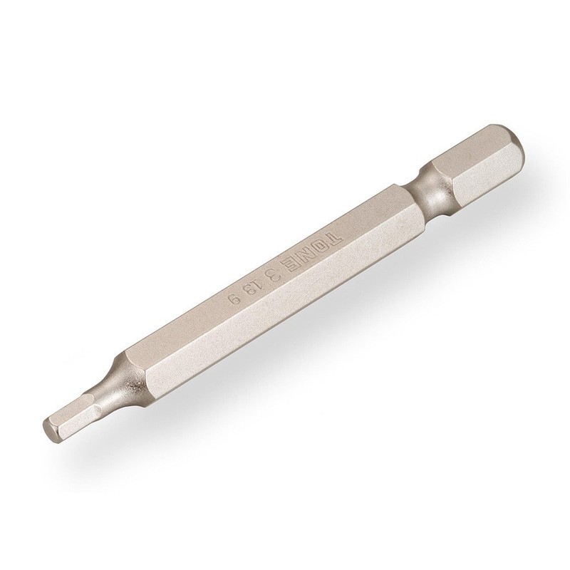Can be fastened and loosened quickly by attaching it to an electric screwdriver. Blade edge: Hex 0.1 inches (3 mm). Total length: 2.6 inches (65 mm). Shank diameter: 0.25 inches (6.35 mm).