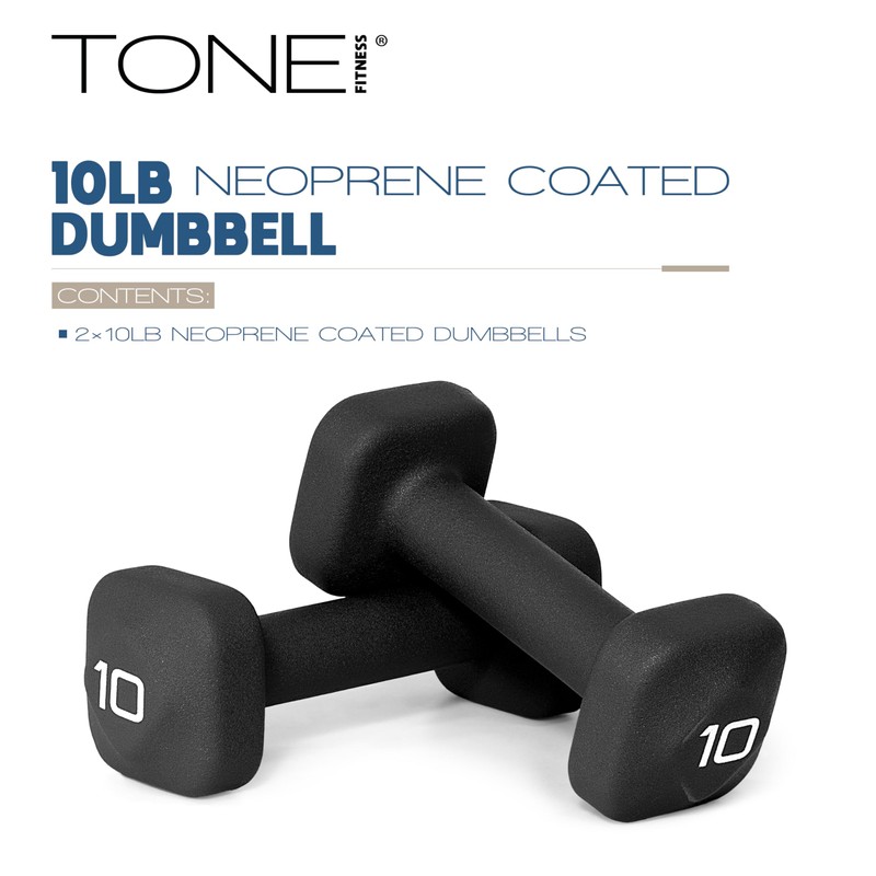 Tone Fitness 10 lb Neoprene Dumbbell Pair for Home Workouts – Non-Slip Design - Black