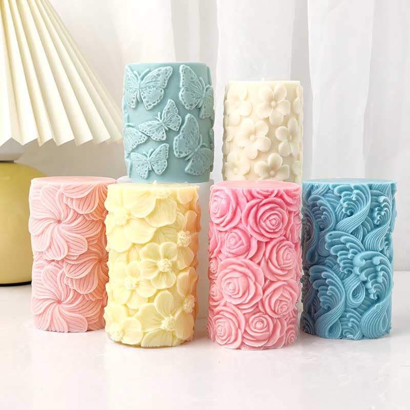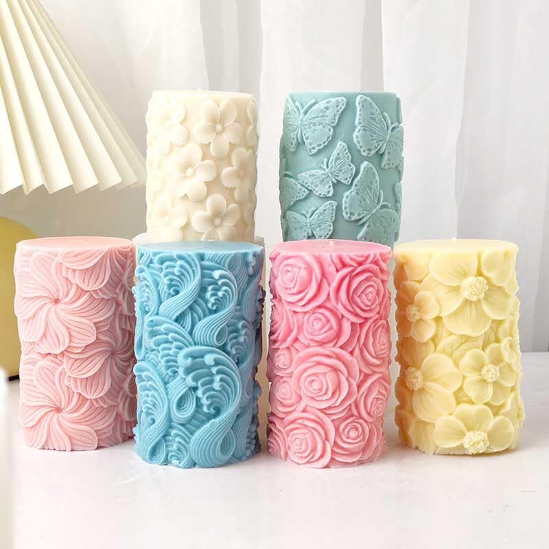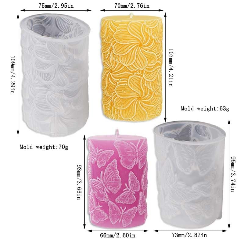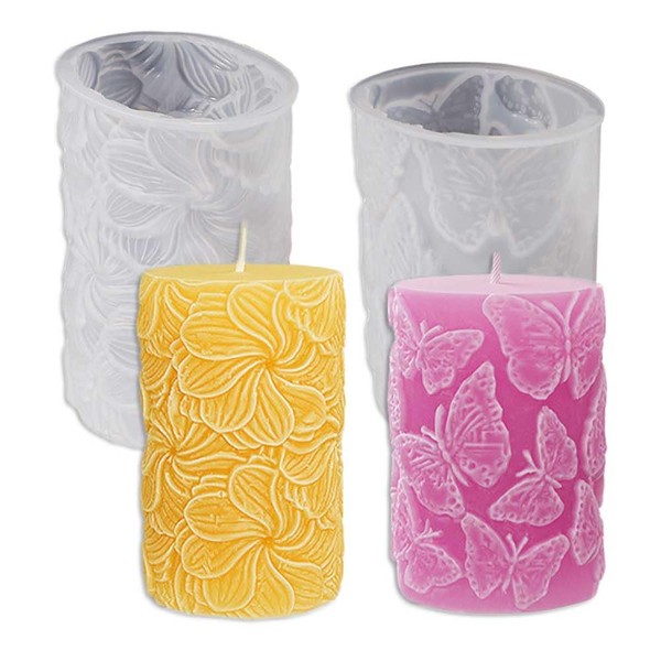 Tone Fun Butterfly Windmill Flower Column (2pcs/Set) Shape Candle Silicone Molds for Making Candle, Resin, Aromatherapy Candles, Handmade Wax Soap, Home Decor, Craft