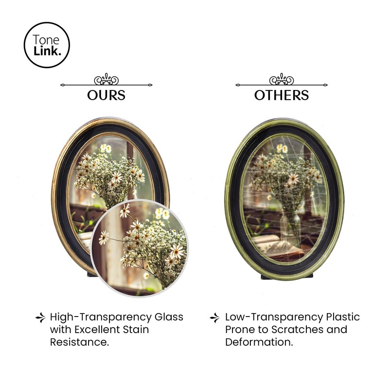 Tone Link. Vintage Oval Picture Frame 4x6 Luxury Antique Photo Frame with Glass Front Table Wall Hanging Black and Gold
