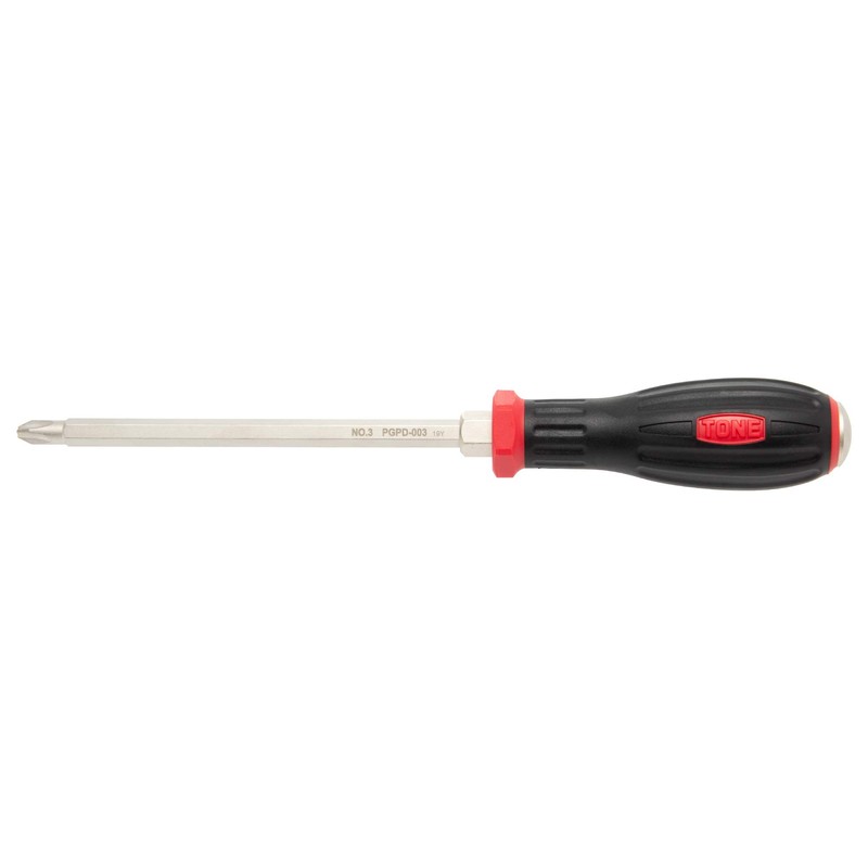 Tone's Power Grip Screwdriver. New design, both in form and material, to fit your hand for best efficiency in both grasping and tightening. Tough minus head and an original plus head allow perfect fit on the screw (PGPD-002 and 003), increasing your work efficiency. Made of non-slip resin and double layers, the handle also stands out with its bold color and let you quickly find the right tool within one glance. Strong magnetic tip. Both power grip screwdriver and power grip speeder screwdriver are registered designs. Get yours from TONE's official US distributor Idaka America and avoid counterfeits.
