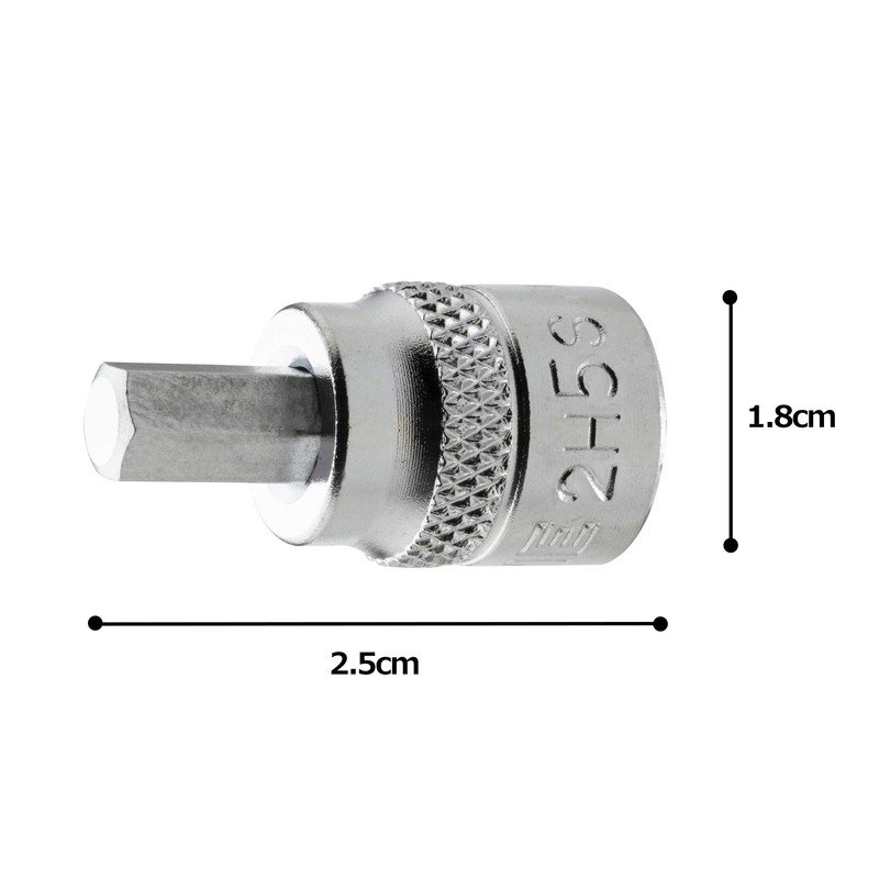 TONE Short Hexagon Socket 2H-05S Insertion Angle 0.25 inch (6.35 mm) (1/4 mm), Double Side Width 0.2 inch (5 mm)