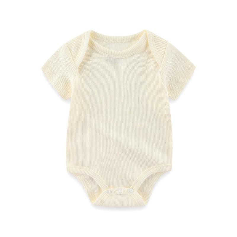 - The package includes: five short-sleeved bodysuits with stripes, plain and printed.