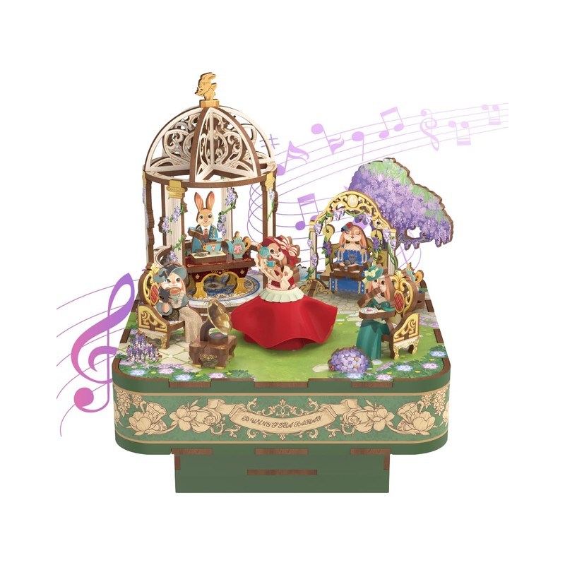 - Create your own play watch: use Tonecheer DIY kit to build your own wooden music box. Ding ding~ It's tea time! Miss rabbit has been waiting in the garden for a whole while. The theme of today's tea party is waltz. Miss Rabbit holds a tea cup in her hand and dances to the waltz rhythm in the garden. Come and join us!