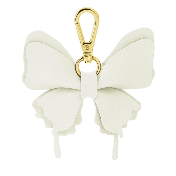 [tonecraft] 蝶々 バイカラー バッグチャーム シンプル バタフライ オーソドックス キーホルダー 人気 おしゃれ 可愛い ちょう PUレザー (ホワイト)