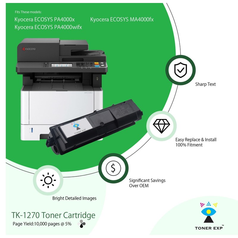 Toner EXP Toner Cartridge for Kyocera ECOSYS MA4000x MA4000fx MA4000wifx, Compatible with TK-1270 TK1270 TONER KIT 1T0C140NL0. Prints up to 10,000 pages.