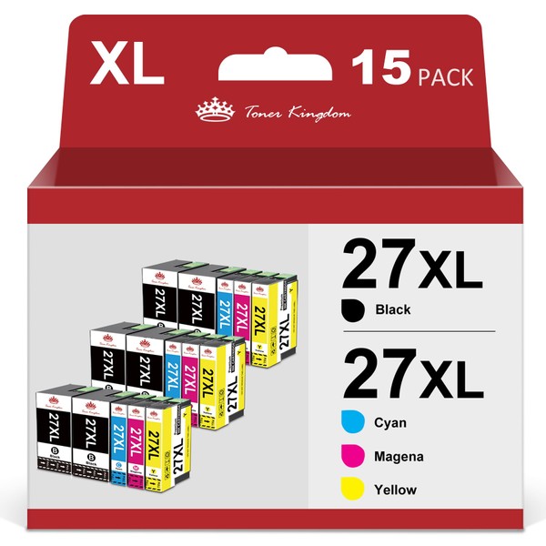 Toner Kingdom 27XL Printer Cartridges Compatible with Epson 27 XL for Epson Workforce WF-3620DWF WF-3640DTWF WF-7110DTW WF-7210DTW WF-7610DW WF-7620DTWF WF-7710DWF WF-7720DTWF WF-7715DWF (Pack of 15)