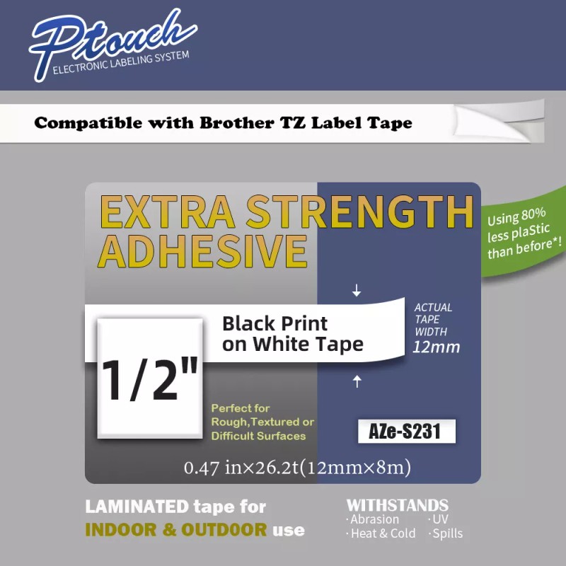 tonertop2014 4 Pack Label Tape TZ TZe-S231 Extra Strength Adhesive Black on White for Brother