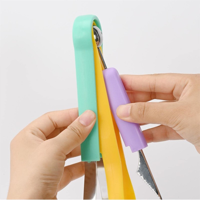 - 4 in 1 Melon baller fruit carving knife fruit slicer tools for DIY fruit salads, desserts, cake, ice cream scooper. It is the best helper for creating beautiful plate in the DIY process