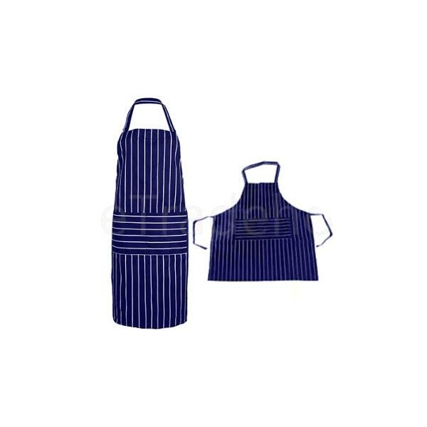 - Professional quality chefs blue & white striped apron with double pockets