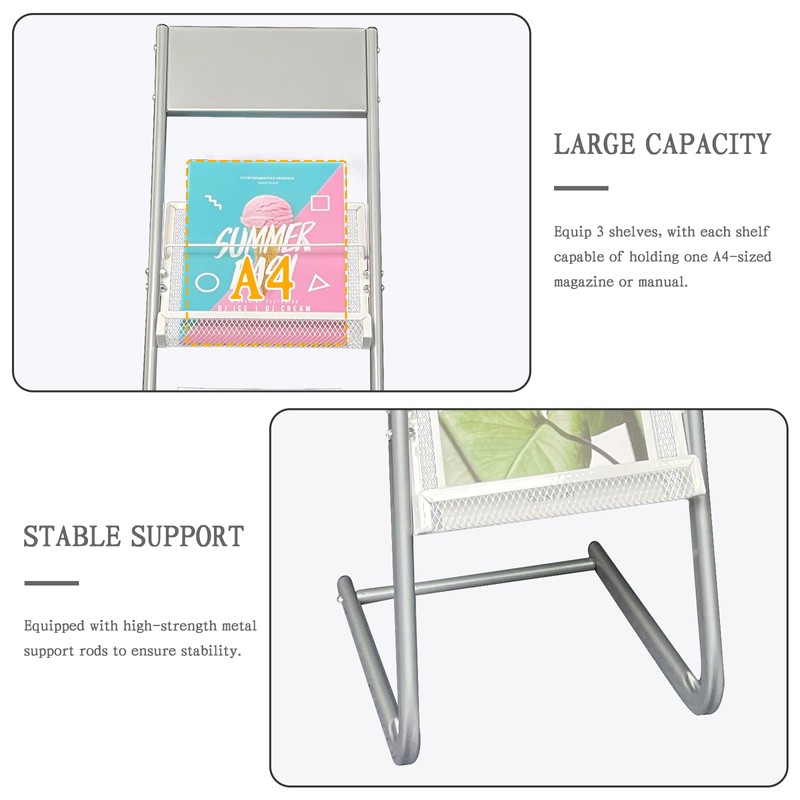 • Versatile Display Stand: This floor-standing 3-layer magazine rack is not only perfect for showcasing magazines but also ideal for displaying brochures, booklets, and other informational materials. It provides a neat and organized way to present essential information.