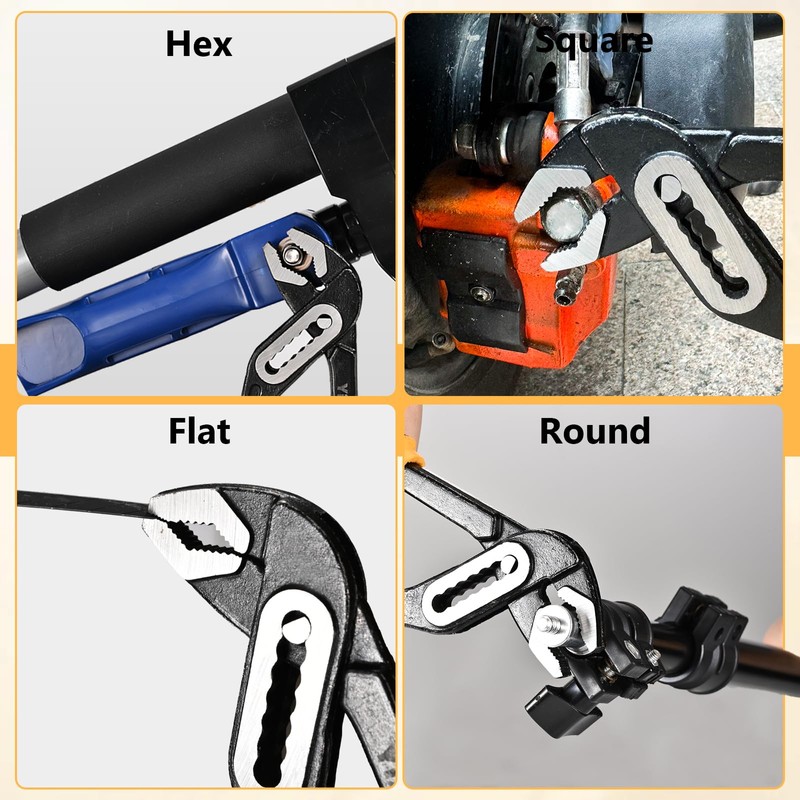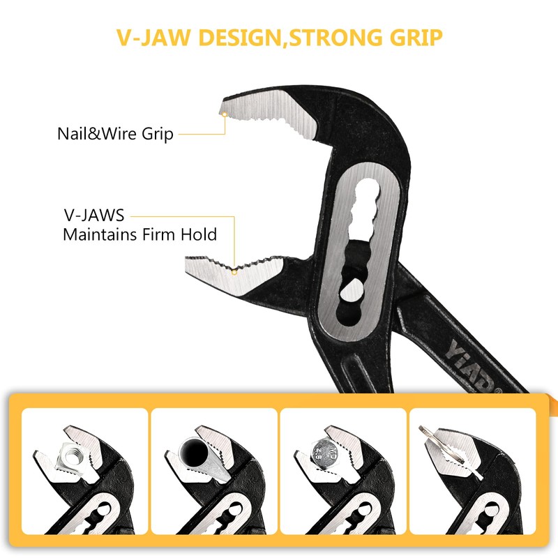 - 🚚Optimum Grip:The V-jaw design provides multiple contact points for a stronger hold on objects,ensuring a secure grip even in wet or oily conditions.Its powerful angled teeth bite firmly into pipes,rods,shafts,and fasteners,delivering a secure grip.This versatile channel locks pliers is engineered for maximum performance,whether you're using water pump pliers for plumbing or adjustable pliers for automotive work.The Groove Joint Pliers Set offers control,making tools suitable for workshop,home. With this channel locks pliers set,you get the reliability of professional-grade water pump pliers and the flexibility of adjustable pliers.this channel locks pliers set that excel in any task.
