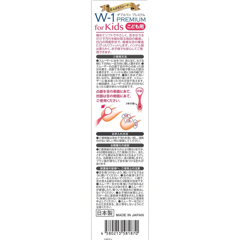 Tongue Brush W-1 (Double One) Premium for Kids, Tongue Cleaner, Tongue Polishing, Prevents Bad Breath (1 Piece of Color)