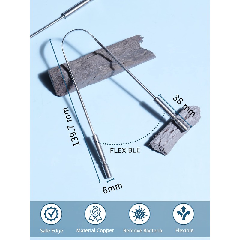 - DESIGN - The 'U' shape curved tongue scrappers are flexible enough to twist and turn, scraping all the corners of your tongue. This personal care essential has been designed by over 50 global professionals to be ultra-smooth and easy to use, for a perfect hygiene formula. It has two non-synthetic handles for good grip and an anti-gagging ridge for back-of-the-mouth cleaning, for a great orthodontic gift.