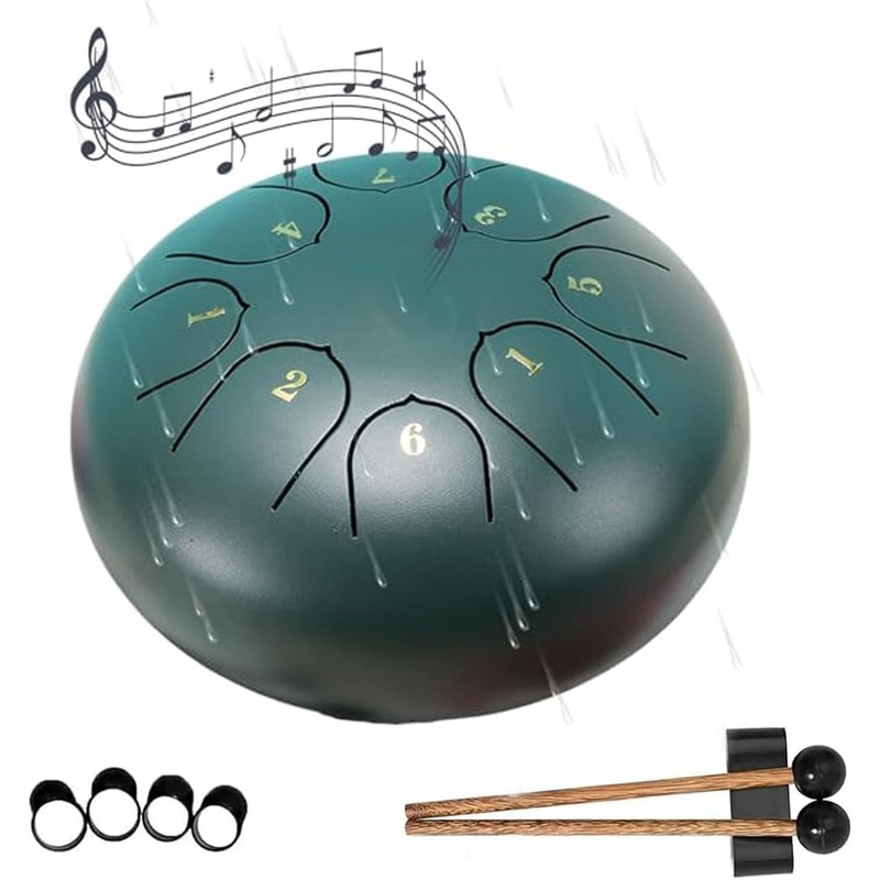 Tongue Drum Rain Drum for Outside Garden, Steel Tongue Drum Rain Chime Waterproof,Instrument for Outside, Chakra Rain Drum Outdoor Green 1PCS