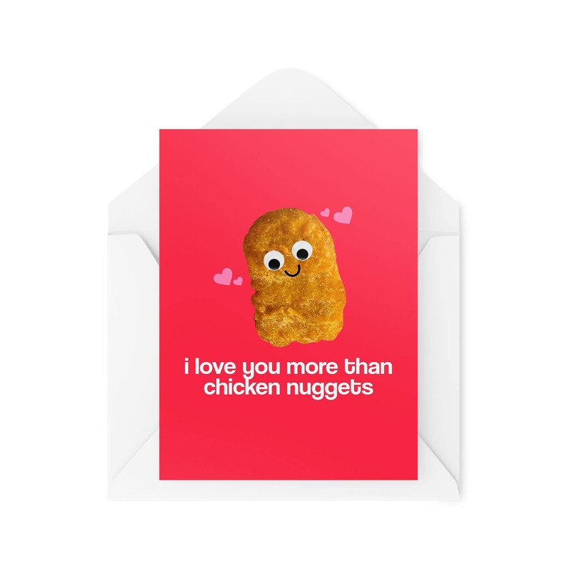 Tongue in Peach Funny Valentine's Day Card - I Love You More Than Chicken Nuggets - Chicken Nugget Card - Girlfriend Boyfriend - Anniversary Card - CBH1447