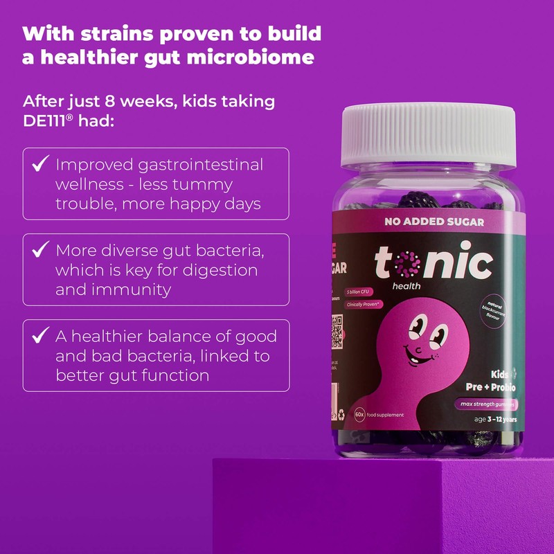 Tonic Health Tonic Health Kids Probiotic Gummies - 2 in 1 Prebiotics & Probiotics for Kids, No Added Sugar, Digestive System, Gut Health, Immune System, Ages 3-12, Vegan, Blackcurrant, Month Supply (60 Count)