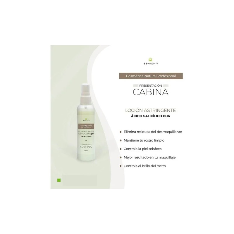 Características del **Tónico Astringente Ácido Salicílico Control Grasa Beohemp (125 ml)**: