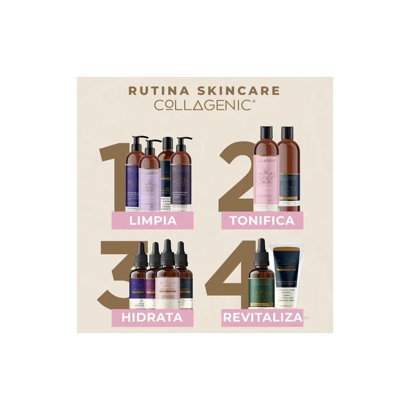 El Tónico Facial Collagenic de 500ml es una solución avanzada en el cuidado de la piel, ofreciendo un 70% más de contenido que los tónicos tradicionales de 350ml. Enriquecido con Niacinamida y Colágeno Hidrolizado, este tónico no solo limpia y elimina las impurezas del maquillaje, sino que también prepara la piel para una hidratación óptima con tu crema hidratante facial o serum facial Collagenic preferido.