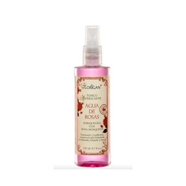 El Tónico Refrescante Agua de Rosas de Florigan, enriquecido con rosa mosqueta, ayuda a tonificar, suavizar e hidratar la piel desnutrida y dañada por el sol. La rosa mosqueta aporta vitaminas y colágeno, favoreciendo la reparación y la apariencia saludable de la piel. Se recomienda rociarlo sobre el rostro limpio, evitando el contacto con los ojos y manteniéndolo fuera del alcance de los niños.