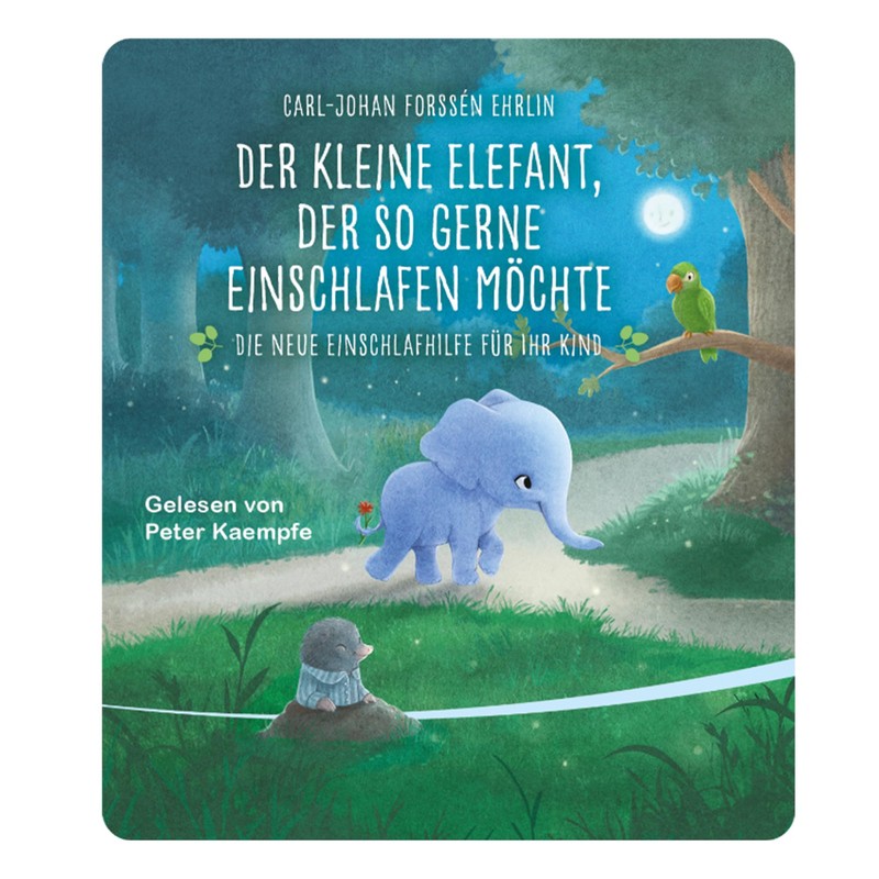 - Box contents and details: Tonie elephant figure, including audiobook: The little elephant who likes to fall asleep, read by Peter Kaempfe, for children aged 3 and up, playing time approx. 34 minutes