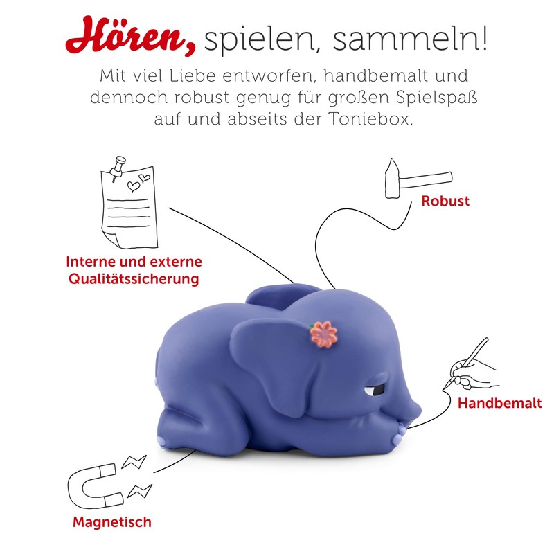- How it works - To listen to the soothing children's audio book, the little elephant Tonie is simply placed on the Toniebox and you're ready to go.