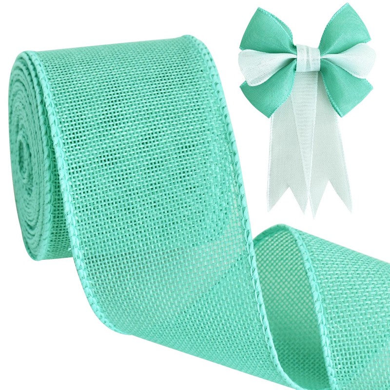 TONIFUL Burlap Wired Ribbon, 2.5 Inch Faux Burlap Ribbons, Turquoise Aqua Blue Burlap Ribbon for Christmas, Home Decor, Gift Wrapping, Tree Topper Bow, Wreath, Outdoor Decorations, Crafts (10 Yards)
