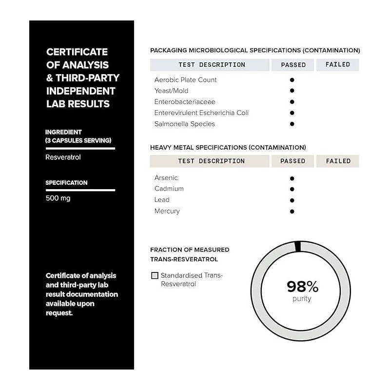Toniiq 1600mg Resveratrol Blend - Ultra High Purity and 3rd Party Tested