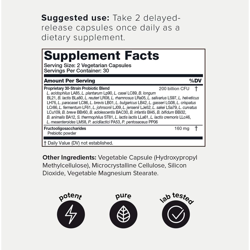 - Third-Party Tested Strains - Factors such as place of origin, storage conditions and transit conditions can lead to decreased potency and even risk of bacterial contamination for any probiotics (including specific probiotics for women and probiotics for men). That is why our 30 strains are fully tested and verified for every batch.